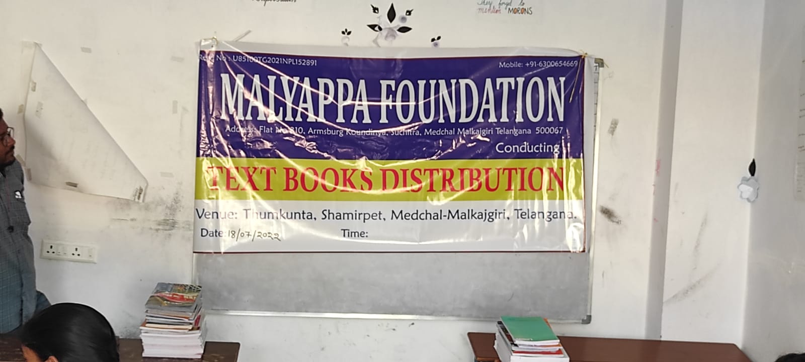 Malyappa Foundation providing Books distribution and skill training unemployees we working to ensure improved employment among youth, Women Empowerment, high quality health care to everyone and ultimately address hunger and poverty. Ensuring the quality of life of the society by taking up various activities Medical camps, sanitizers and COVID-19 kits distributed in rural areas.